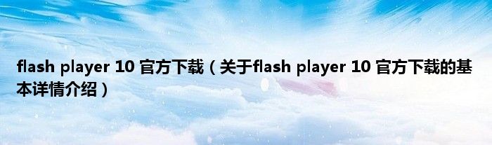 本文关于flash player 10 官方下载的基本详情介绍就讲解完毕,希望对大家有所帮助。
