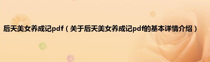 本文关于后天美女养成记pdf的基本详情介绍就讲解完毕,希望对大家有所帮助。