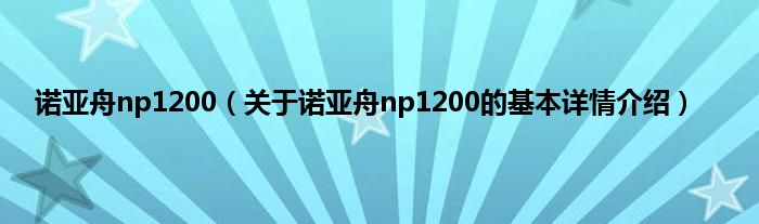 本文关于诺亚舟np1200的基本详情介绍就讲解完毕,希望对大家有所帮助。