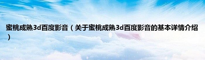本文关于蜜桃成熟3d百度影音的基本详情介绍就讲解完毕,希望对大家有所帮助。