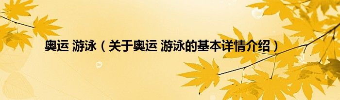 本文关于奥运 游泳的基本详情介绍就讲解完毕,希望对大家有所帮助。