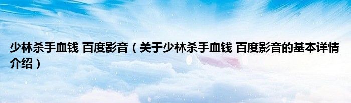 少林杀手血钱百度影音(关于少林杀手血钱百度影音的基本详情介绍)