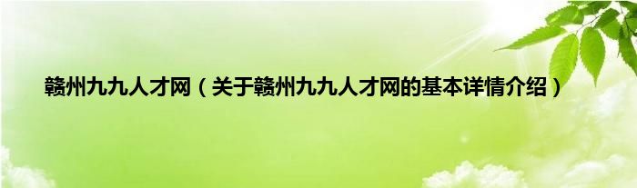 本文关于赣州九九人才网的基本详情介绍就讲解完毕,希望对大家有所帮助。