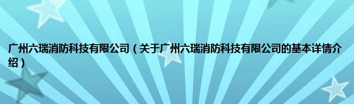 本文关于广州六瑞消防科技有限公司的基本详情介绍就讲解完毕,希望对大家有所帮助。