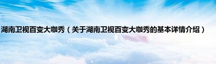 本文关于湖南卫视百变大咖秀的基本详情介绍就讲解完毕,希望对大家有所帮助。