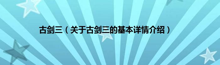 大家好我是小蝌蚪,古剑三,关于古剑三的基本详情介绍很多人还不知道,那么现在让我们一起来看看吧!