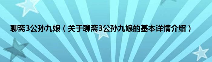 本文关于聊斋3公孙九娘的基本详情介绍就讲解完毕,希望对大家有所帮助。