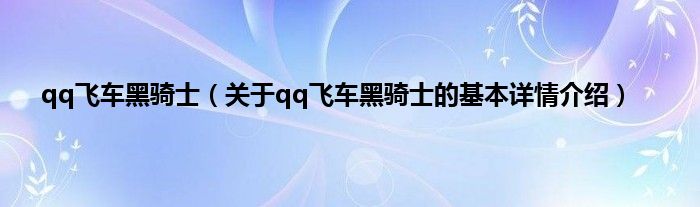 本文关于qq飞车黑骑士的基本详情介绍就讲解完毕,希望对大家有所帮助。