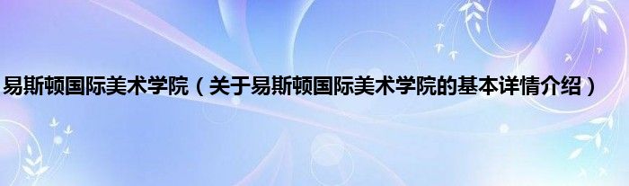 本文关于易斯顿国际美术学院的基本详情介绍就讲解完毕,希望对大家有所帮助。