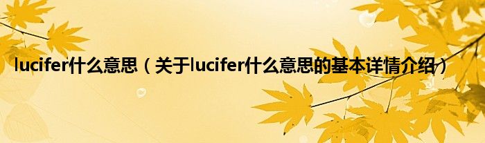 本文关于lucifer什么意思的基本详情介绍就讲解完毕,希望对大家有所帮助。