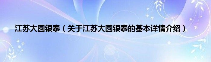 本文关于江苏大圆银泰的基本详情介绍就讲解完毕,希望对大家有所帮助。