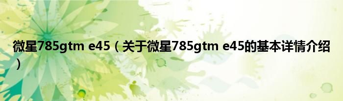 微星785gtm e45(关于微星785gtm e45的基本详情介绍)
