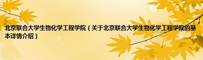 本文关于北京联合大学生物化学工程学院的基本详情介绍就讲解完毕,希望对大家有所帮助。