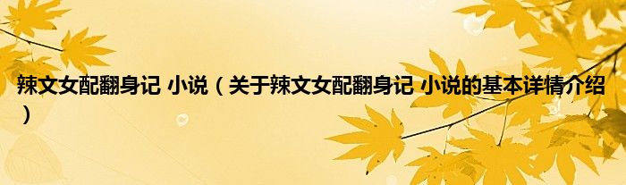 本文关于辣文女配翻身记 小说的基本详情介绍就讲解完毕,希望对大家有所帮助。