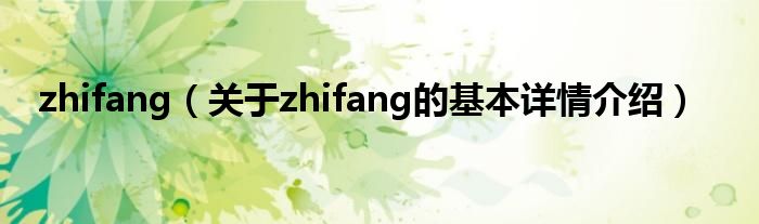 本文关于zhifang的基本详情介绍就讲解完毕,希望对大家有所帮助。