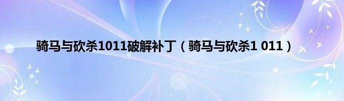 大家好,小问来为大家解答以上问题。骑马与砍杀1011破解补丁,骑马与砍杀1 011这个很多人还不知道,现在让我们一起来看看吧!