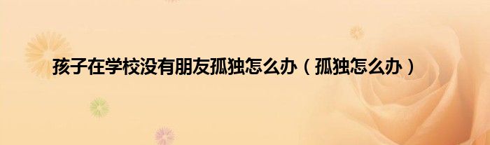以上就是【孩子在学校没有朋友孤独怎么办,孤独怎么办】相关内容。