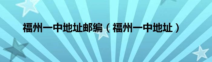 以上就是【福州一中地址邮编,福州一中地址】相关内容。