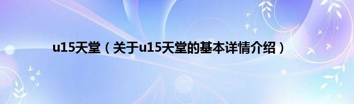本文关于u15天堂的基本详情介绍就讲解完毕,希望对大家有所帮助。
