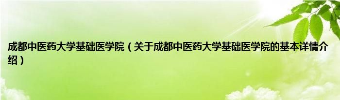 本文关于成都中医药大学基础医学院的基本详情介绍就讲解完毕,希望对大家有所帮助。