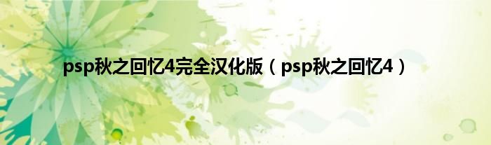 以上就是【psp秋之回忆4完全汉化版,psp秋之回忆4】相关内容。