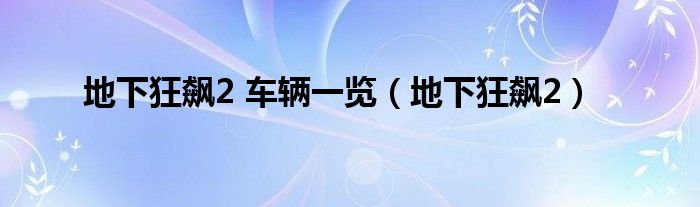大家好,小问来为大家解答以上问题。地下狂飙2 车辆一览,地下狂飙2这个很多人还不知道,现在让我们一起来看看吧!