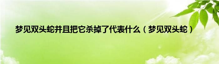 大家好,小问来为大家解答以上问题。梦见双头蛇并且把它杀掉了代表什么,梦见双头蛇这个很多人还不知道,现在让我们一起来看看吧!