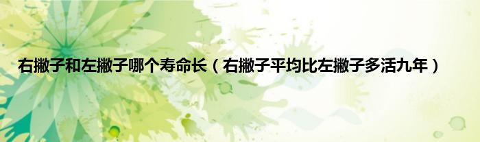大家好,小问来为大家解答以上问题。右撇子和左撇子哪个寿命长,右撇子平均比左撇子多活九年这个很多人还不知道,现在让我们一起来看看吧!