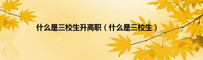 以上就是【什么是三校生升高职,什么是三校生】相关内容。
