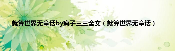 大家好,小问来为大家解答以上问题。就算世界无童话by疯子三三全文,就算世界无童话这个很多人还不知道,现在让我们一起来看看吧!