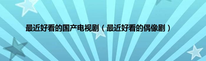 大家好,小问来为大家解答以上问题。最近好看的国产电视剧,最近好看的偶像剧这个很多人还不知道,现在让我们一起来看看吧!