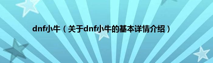 本文关于dnf小牛的基本详情介绍就讲解完毕,希望对大家有所帮助。