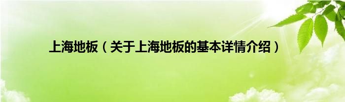 本文关于上海地板的基本详情介绍就讲解完毕,希望对大家有所帮助。