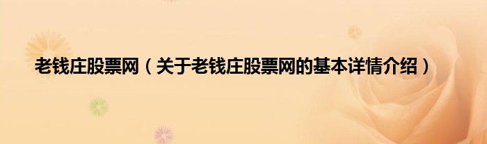 本文关于老钱庄股票网的基本详情介绍就讲解完毕,希望对大家有所帮助。