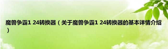 本文关于魔兽争霸1 24转换器的基本详情介绍就讲解完毕,希望对大家有所帮助。