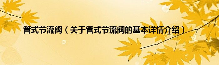 管式节流阀(关于管式节流阀的基本详情介绍)
