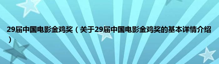 本文关于29届中国电影金鸡奖的基本详情介绍就讲解完毕,希望对大家有所帮助。