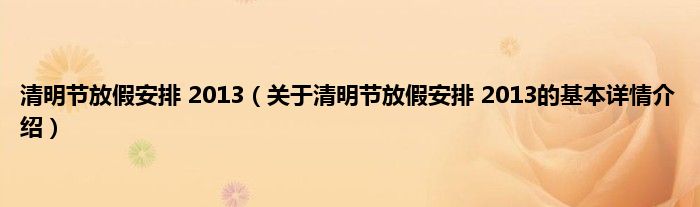 本文关于清明节放假安排 2013的基本详情介绍就讲解完毕,希望对大家有所帮助。