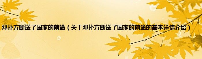 本文关于邓扑方断送了国家的前途的基本详情介绍就讲解完毕,希望对大家有所帮助。