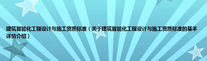 本文关于建筑智能化工程设计与施工资质标准的基本详情介绍就讲解完毕,希望对大家有所帮助。