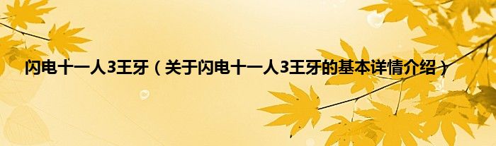 本文关于闪电十一人3王牙的基本详情介绍就讲解完毕,希望对大家有所帮助。