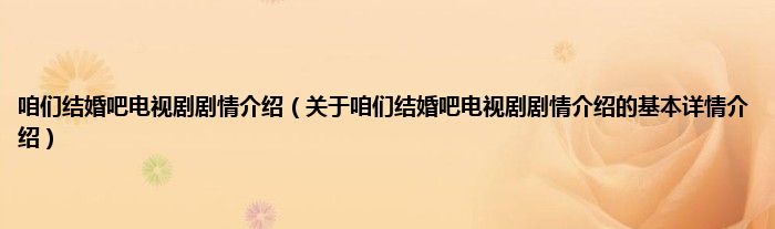 本文关于咱们结婚吧电视剧剧情介绍的基本详情介绍就讲解完毕,希望对大家有所帮助。
