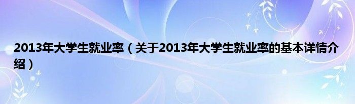 本文关于2013年大学生就业率的基本详情介绍就讲解完毕,希望对大家有所帮助。