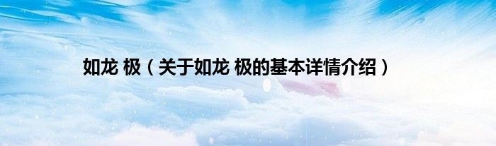 大家好我是小蝌蚪,如龙 极,关于如龙 极的基本详情介绍很多人还不知道,那么现在让我们一起来看看吧!