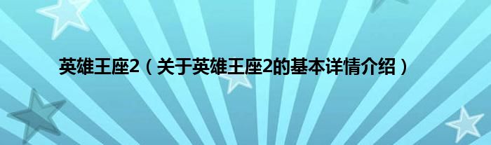 英雄王座2(关于英雄王座2的基本详情介绍)