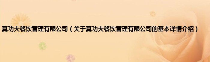 本文关于真功夫餐饮管理有限公司的基本详情介绍就讲解完毕,希望对大家有所帮助。
