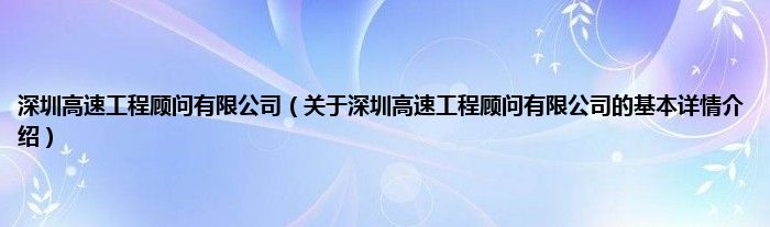 本文关于深圳高速工程顾问有限公司的基本详情介绍就讲解完毕,希望对大家有所帮助。
