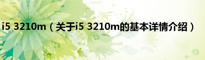 本文关于i5 3210m的基本详情介绍就讲解完毕,希望对大家有所帮助。