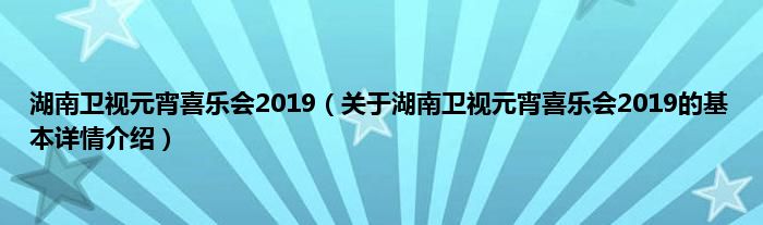 本文关于湖南卫视元宵喜乐会2019的基本详情介绍就讲解完毕,希望对大家有所帮助。