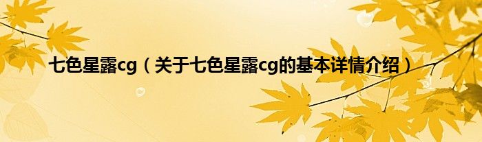 本文关于七色星露cg的基本详情介绍就讲解完毕,希望对大家有所帮助。
